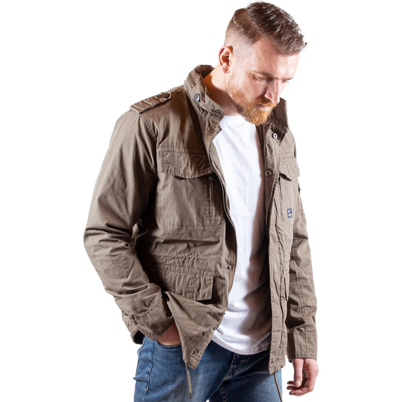 Klassieke correspondent fieldjas. Mooie dicht geweven kwaliteit katoenen "ripstop" jas met polyester-katoenen voering en goede stevige rits. Borst en heupzakken.