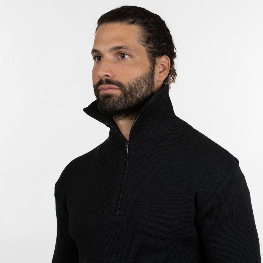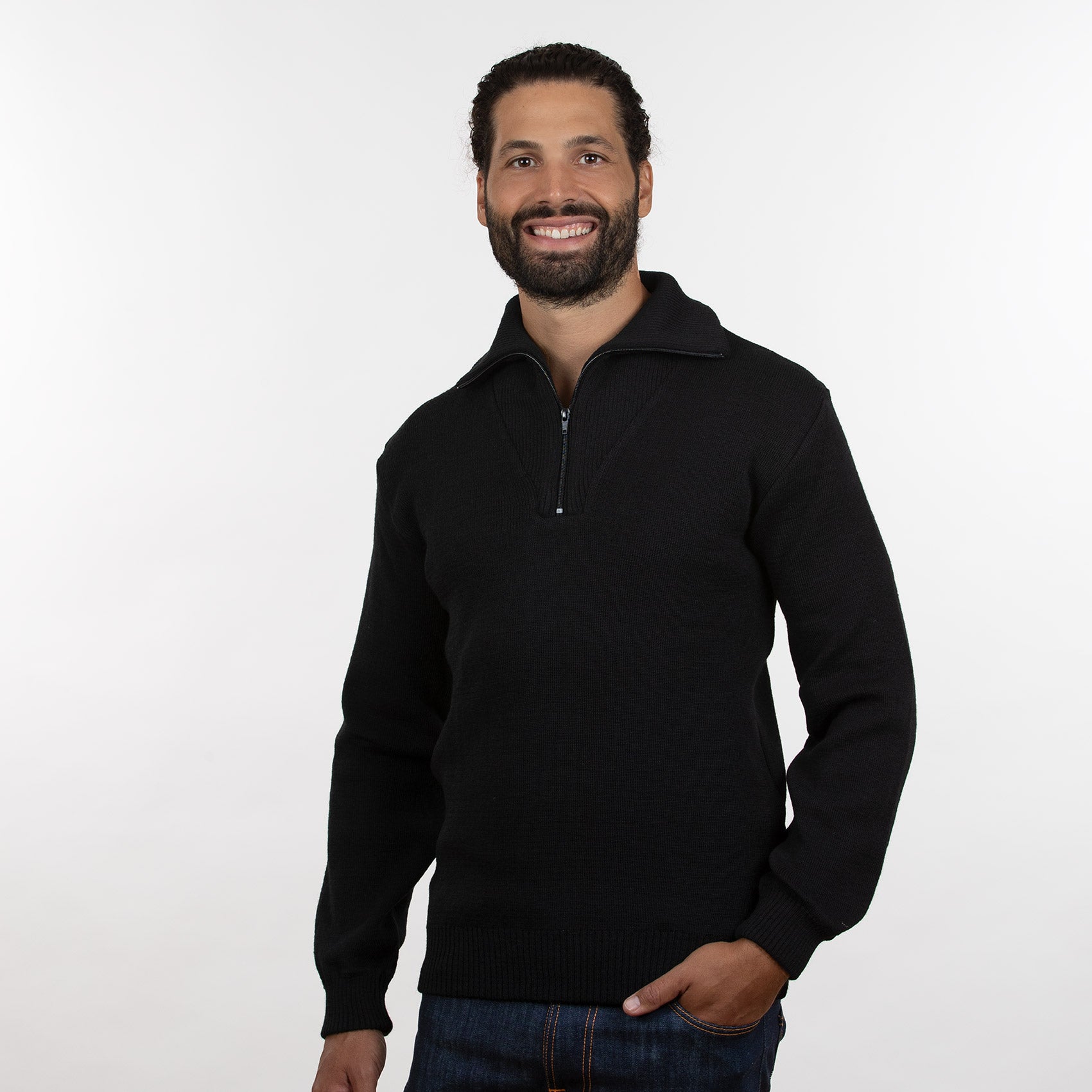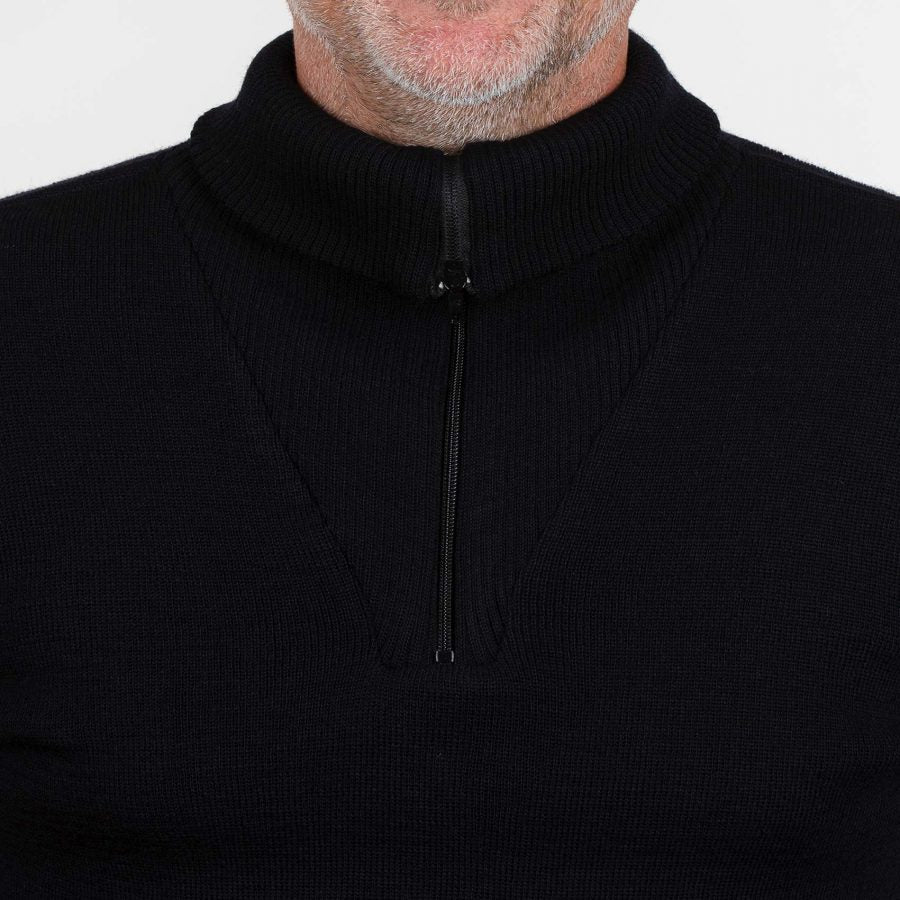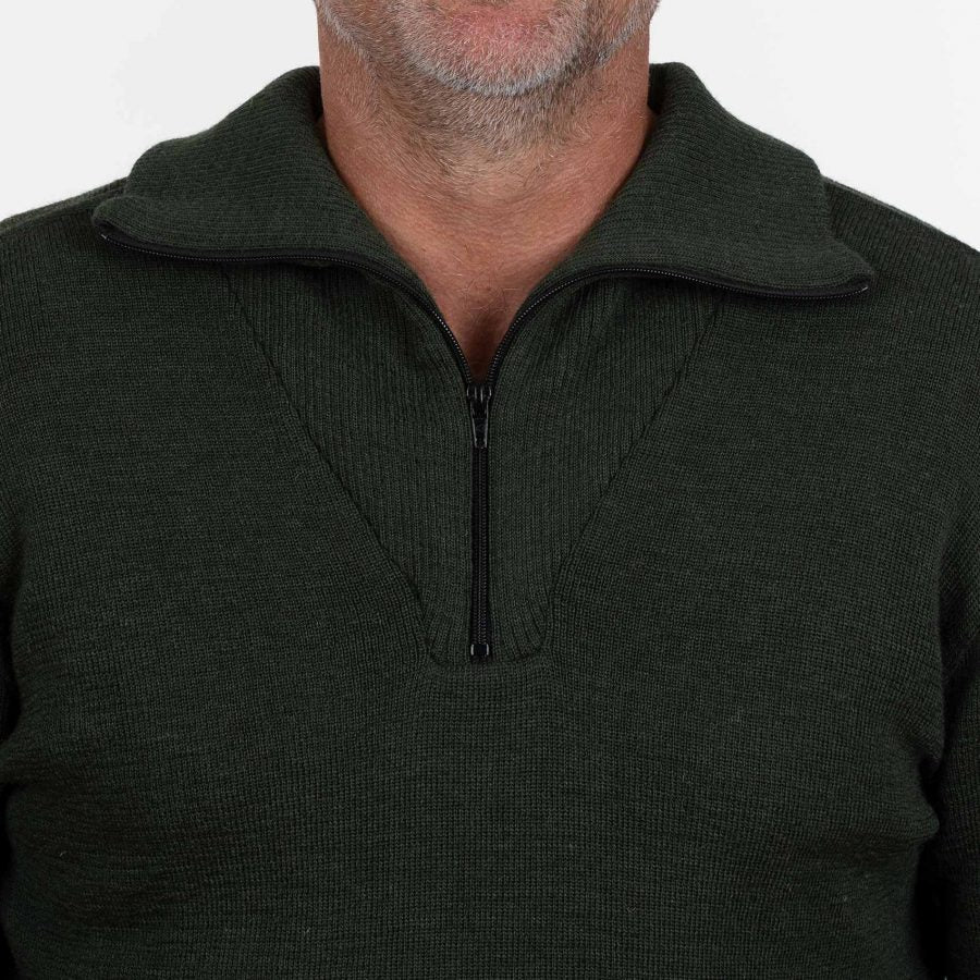 Wij vinden dit de meest praktische en functionele 100% wollen trui. Fijn breiwerk van de hoogste kwaliteit en waardevol aangesloten model.