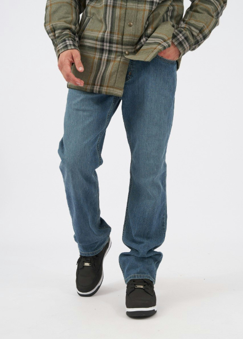 Hét bewijs dat stoer niet saai hoeft te zijn. Deze herenjeans voor werk, vrijetijd en outdoor. Uitgevoerd in een zware kwaliteit stretchdenim met een band die onder de taille valt en een toelopende pijp die over de schoenen valt.