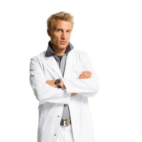 Lange mouw, omkeerkraag, blinde drukknopenlijst, 1 borstzak, 2 zijzakken, split in het rugpand.