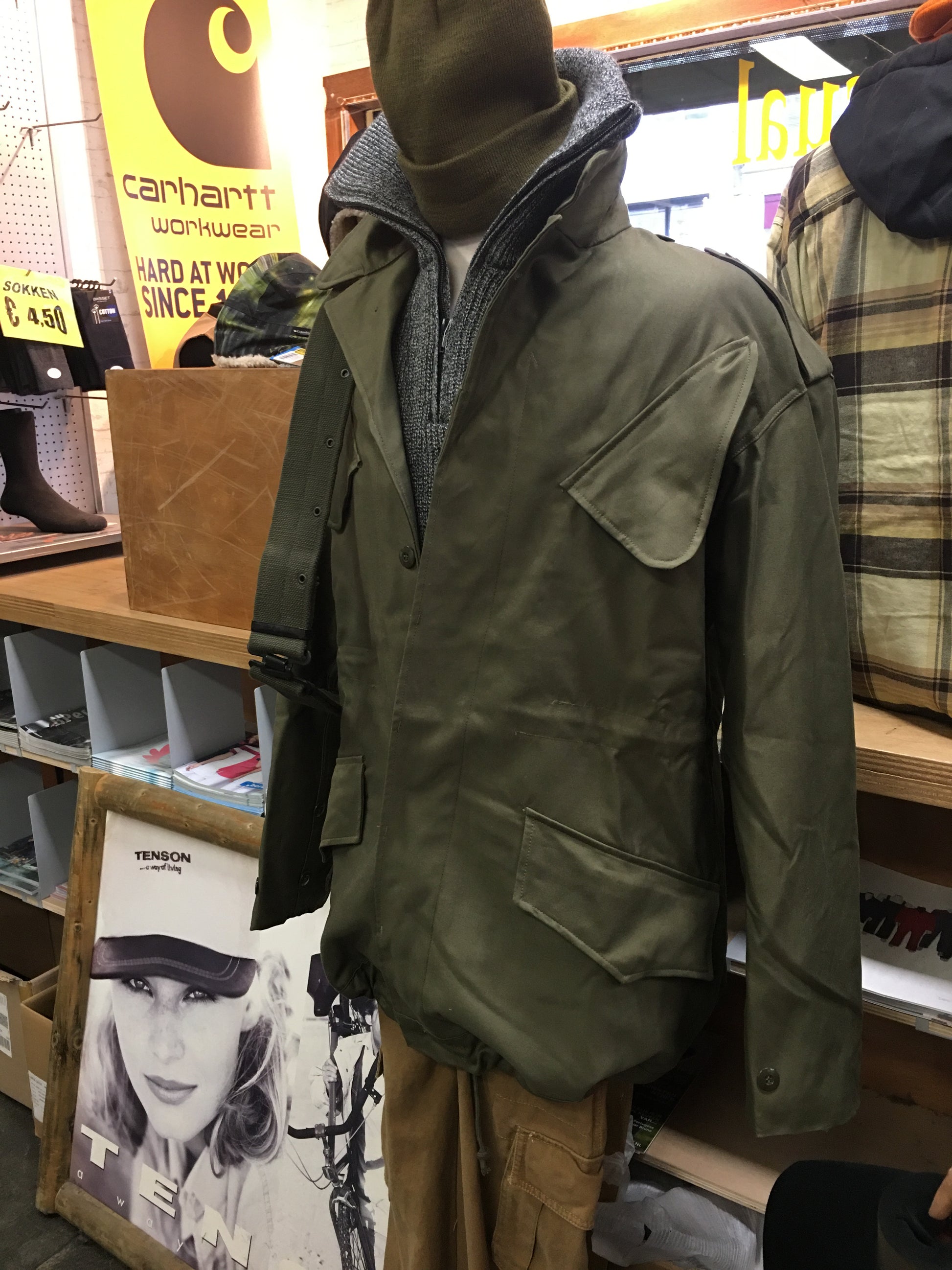 Dit is het jasje dat jij of je vader nog had uit z'n diensttijd en dat hij daarna 30 jaar in de tuin heeft gedragen ttot hij was versleten.