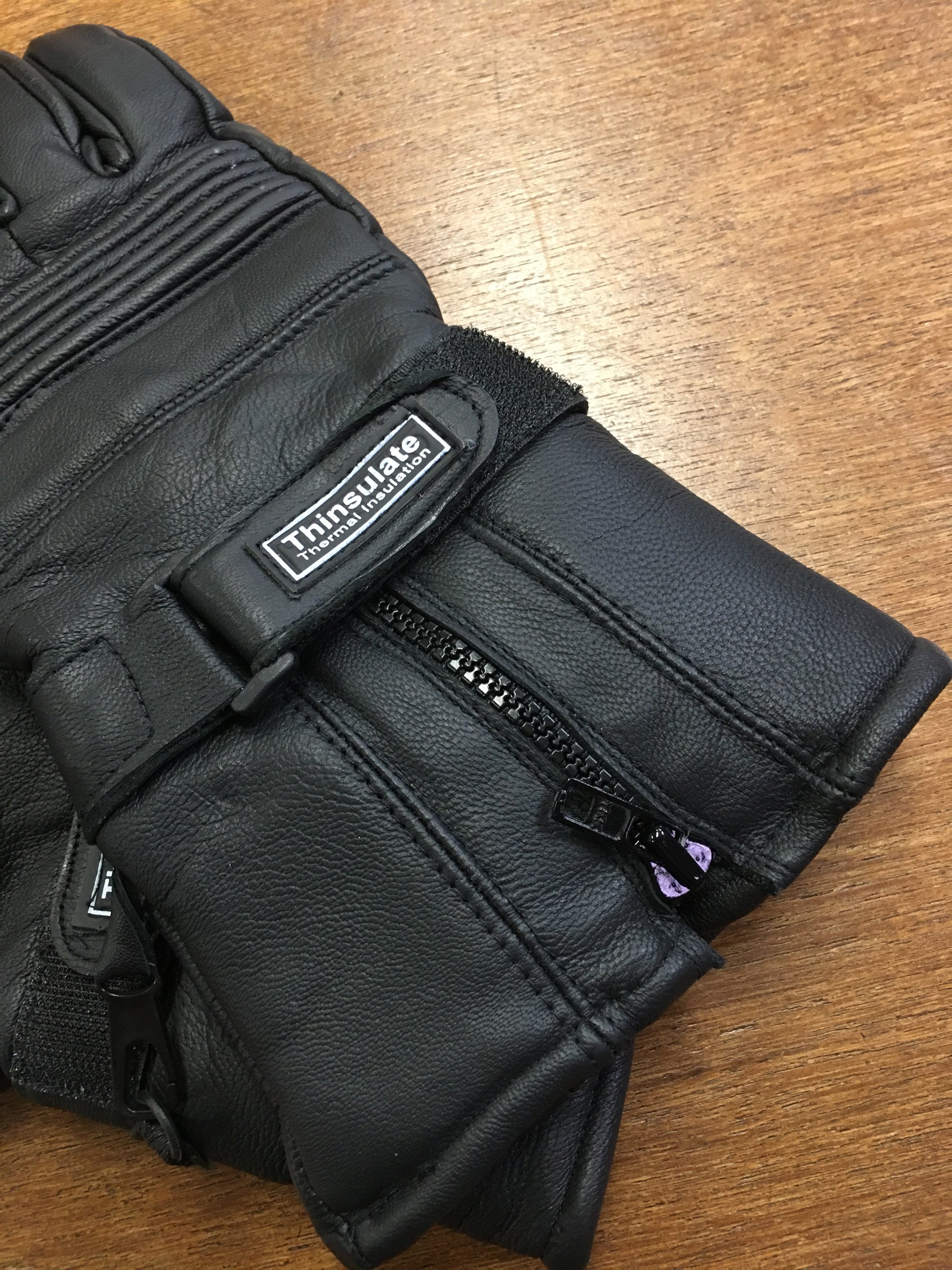 Goede en stevige motorhandschoen met lederen kap, rits- en klittenband-sluiting.