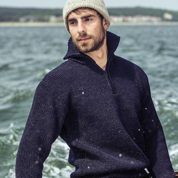 Deze duitse schipperstrui heeft een enigszins lossere pasvorm en een grover breiwerk dan de "friesche".