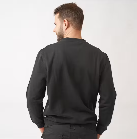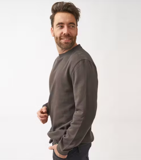 Katoenen sweater met de normale rechte pasvorm. Goede kwaliteit. Mooie aangesloten halsboord en afwerking.