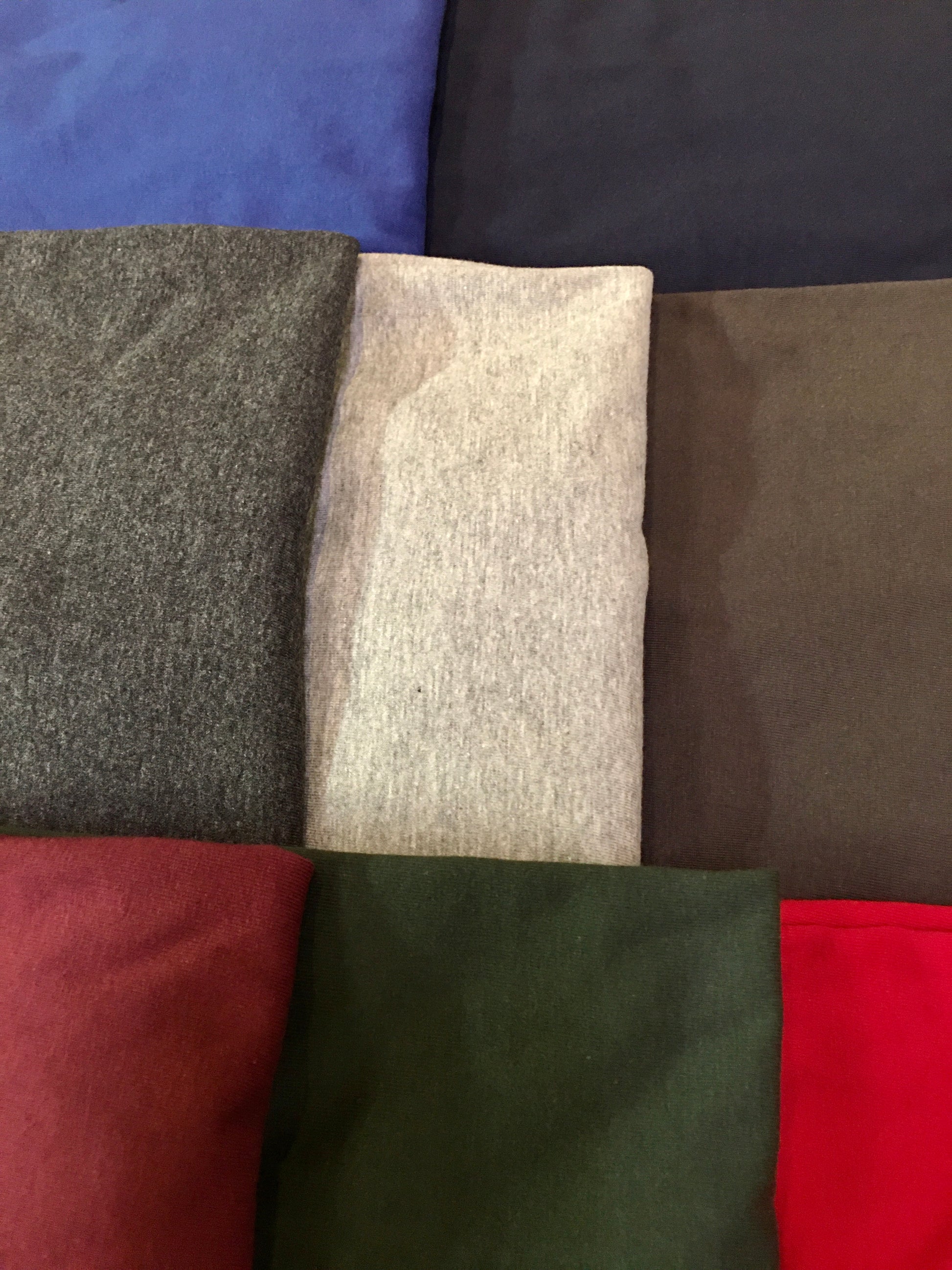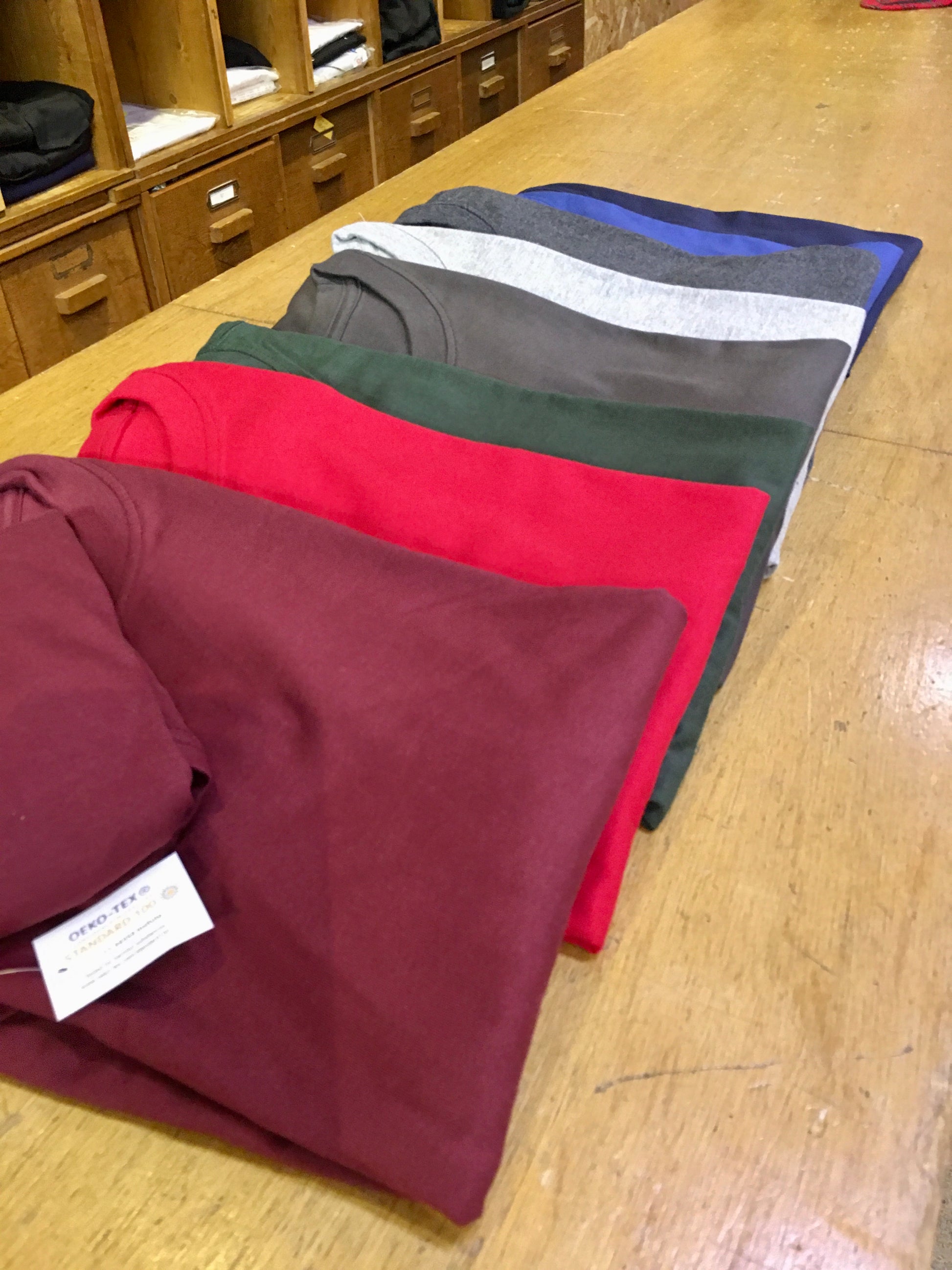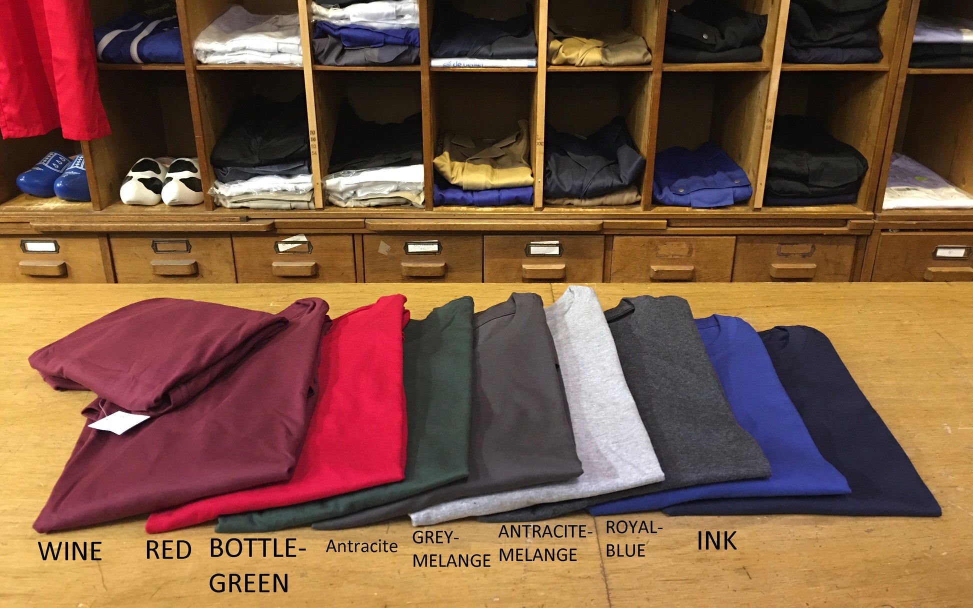 Kijk voor de kleuren even naar de foto van de t-shirts op de toonbank.
