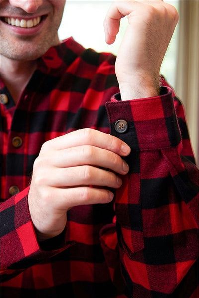 Gemaakt in Ierland, knoopsluiting met vier knopen, opstaande grandfather-boord, borstzak, 100% geborsteld katoenflanel.