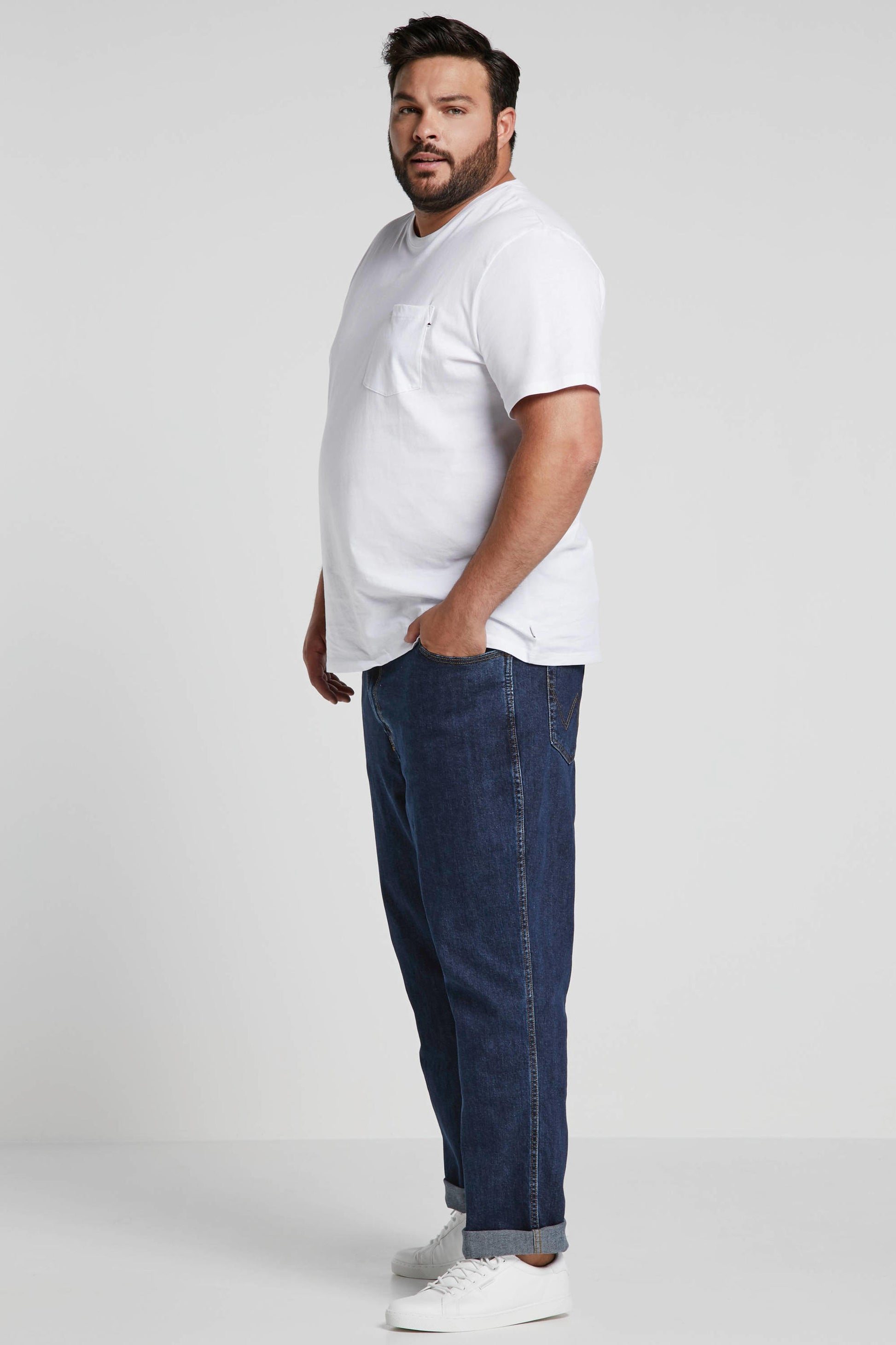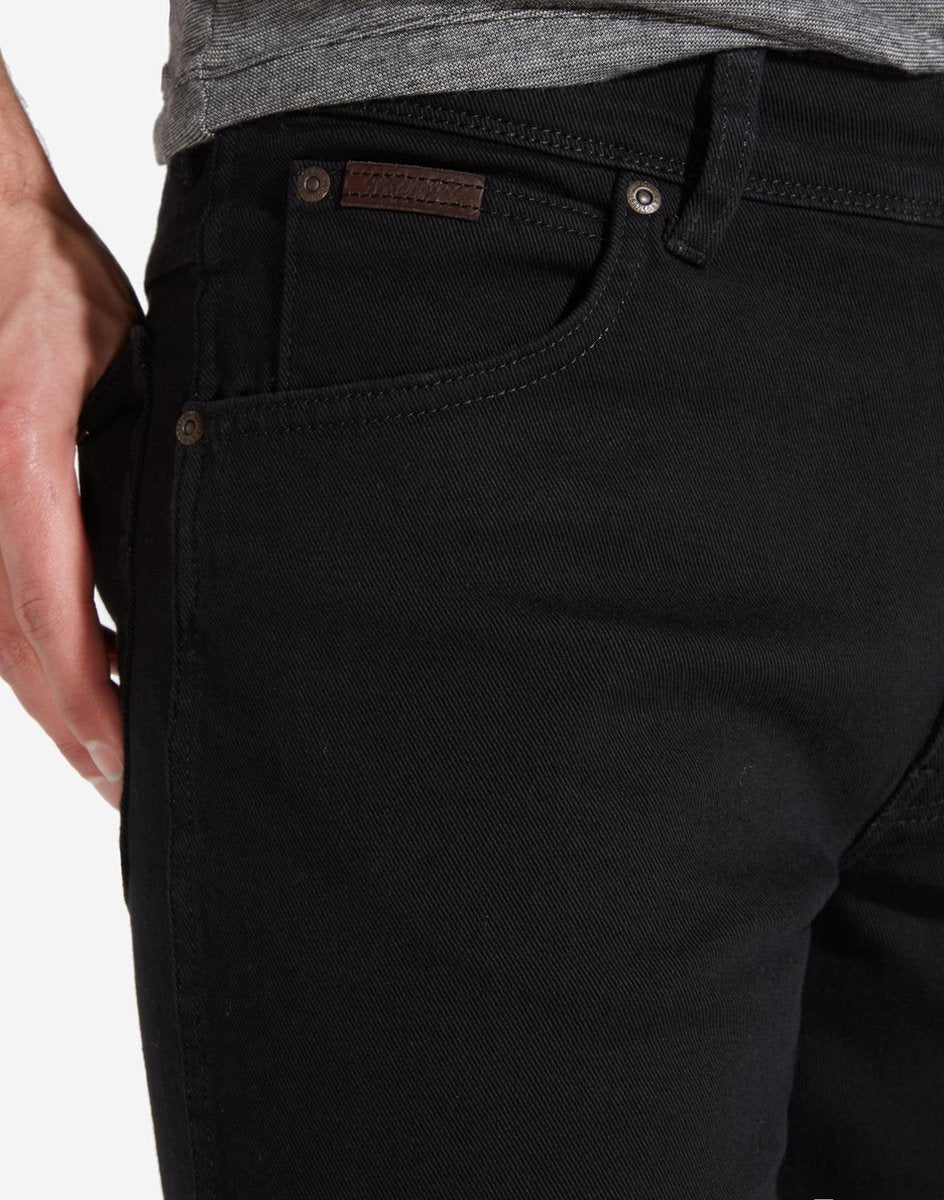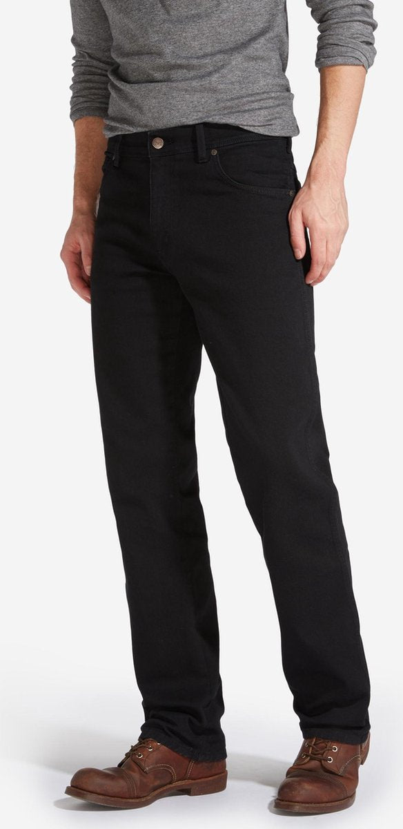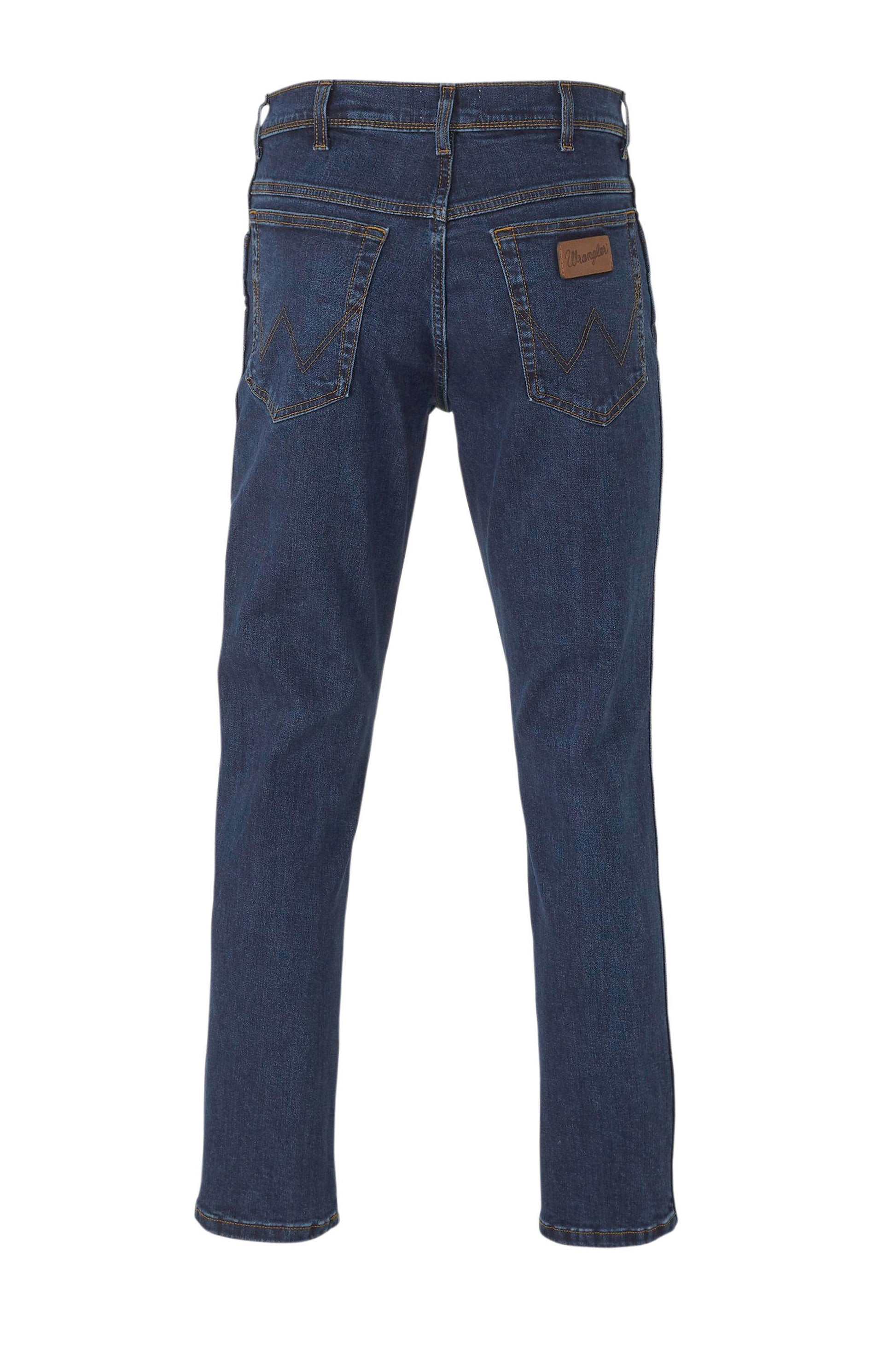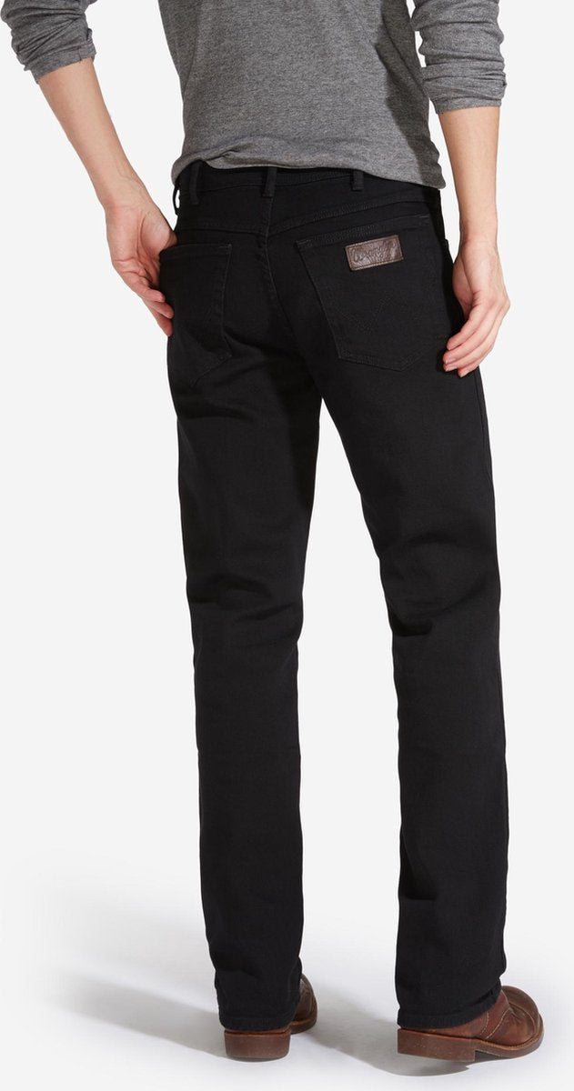 Klassieke taille, een ritssluiting en rechte broekspijpen. Gemaakt uit katoen dat is goedgekeurd door het Better Cotton Initiative (BCI), 's werelds grootste duurzaamheidsprogramma voor katoen. Authentieke Wrangler 'W'-stiknaden en opgestikt logo. Koperkleurige metalen details en stiknaden.